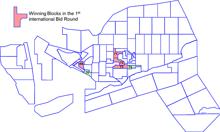وفي المجمل، تم تقديم 22 عرضًا على المناطق الثماني التي تمت ترسيتها، من 12 شركة تمثل 11 دولة.