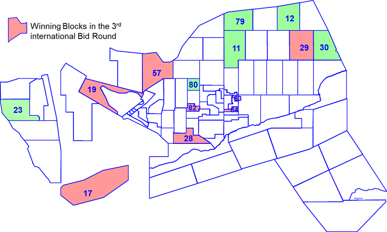 تم تأهيل 34 شركة (تمثل 25 دولة) مسبقًا لتقديم عطاءاتها في المؤتمر الدولي الثالث. عملية تقديم العطاءات في الجولة الثالثة: