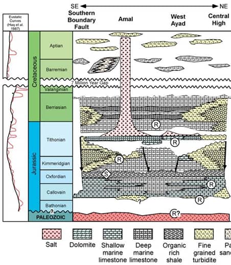 - 95% من النفط والغاز المكتشف في القطاع (18) قادم من تكوين اليف الجوراسي. استمر التنقيب عن النفط مع اقتراح اكتشاف HC من الطابق السفلي المكسور والتكوينات الثانوية الأخرى.