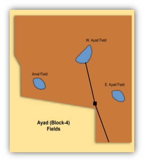 - بلوك عياض (4) تقع في حوض السبعتين (مأرب – شبوة) بمساحة (1,998) كم2. وتقع جنوب حقول العقلة S2 المنتجة وغرب حقول داميس بلوك S1 المنتجة.