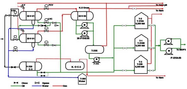 - 2 فواصل NATCO بسعة 10000 برميل. فاصل آخر بسعة 10.000 برميل احتياطيًا.