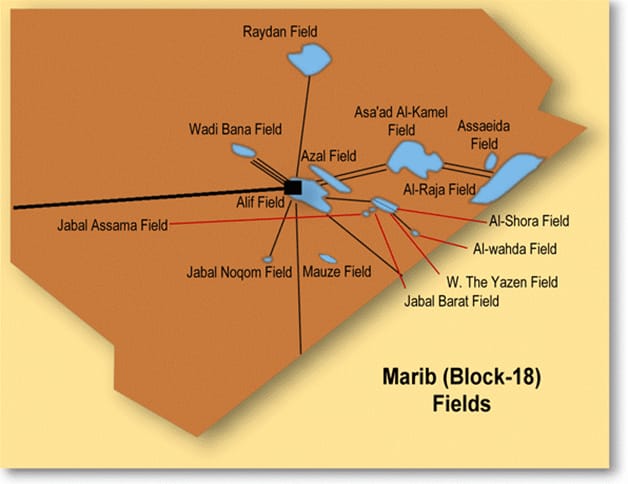 - ال مأرب – الجوف تحتوي البلوك على أكثر من 21 حقلاً للنفط والغاز.